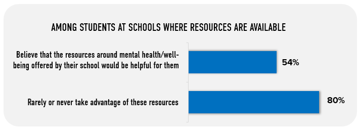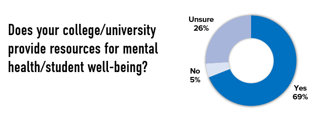 - Nearly 70 percent of students indicated that their campuses provided mental health resources