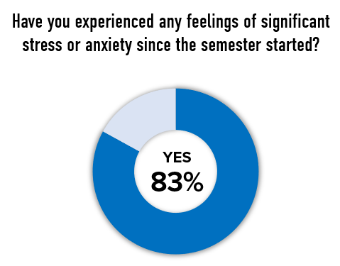 - 8 in 10 students (83 percent) reported experiencing feelings of significant stress or anxiety since the fall 2021 semester started