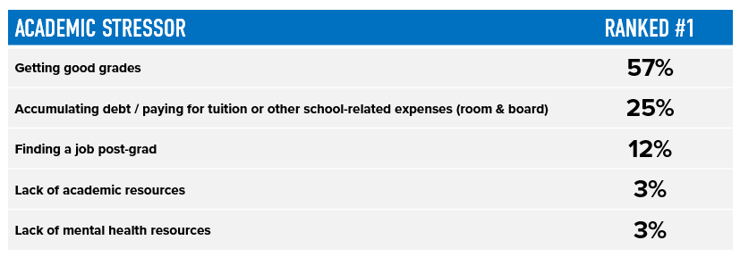 - Just 3 percent of students said lack of academic resources caused the most stress and another 3 percent listed lack of mental health resources as the biggest stressor