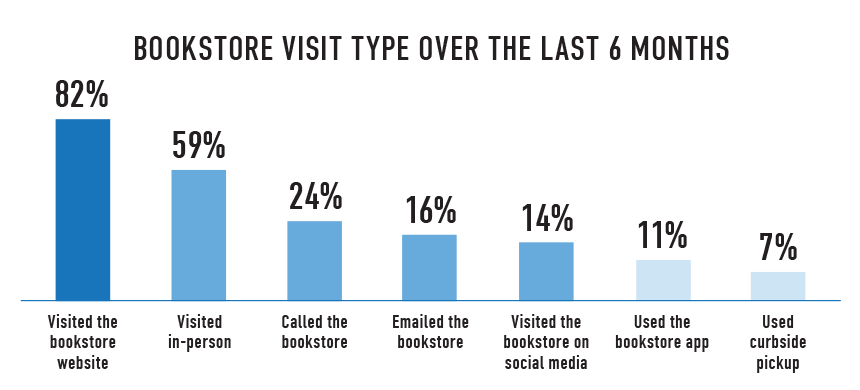 Over the past year, students engaged with their campus bookstore in multiple ways – they emailed, called, visited the store’s ecommerce site, connected on social media, and when possible, they came into the store. In fact, despite the barriers to in-store shopping, more than half of students (59%) visited their bookstore. Digital shopping also increased this past year, driven by the pandemic and campus closures.