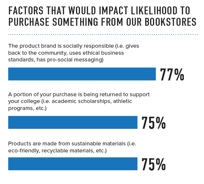 Gen Z – and college students of this generation specifically – also derives emotional benefits from buying from sustainable brands and those that give back. These attributes create a strong driver for purchase at the college store.