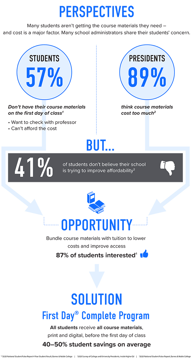 Supporting students and helping them be as prepared as possible is top of mind for all institutional stakeholders right now. At the foundation of this is course material management. With the current system, ensuring students have the course materials they need — in an affordable manner — requires overcoming a number of challenges — including getting everyone on the same page. Fortunately, students and administrators have shared concerns as well as the opportunity for a shared solution.