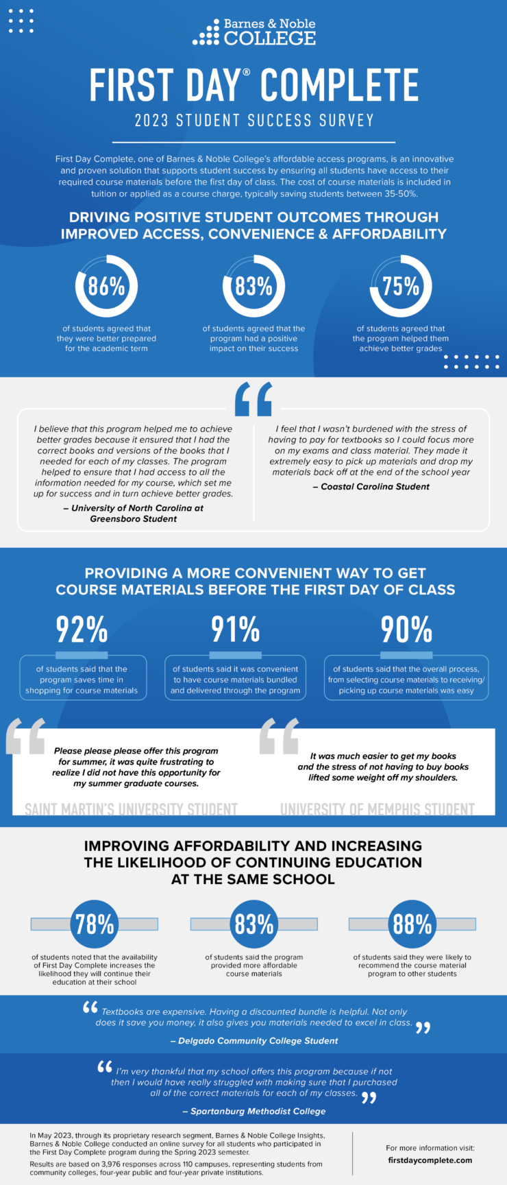With 191 campus stores now offering BNC’s First Day® Complete affordable access program, approximately 950,000 undergraduate and graduate students—up from 800,000 in the 2023 fall term—benefit from improved course material access, convenience, and affordability.