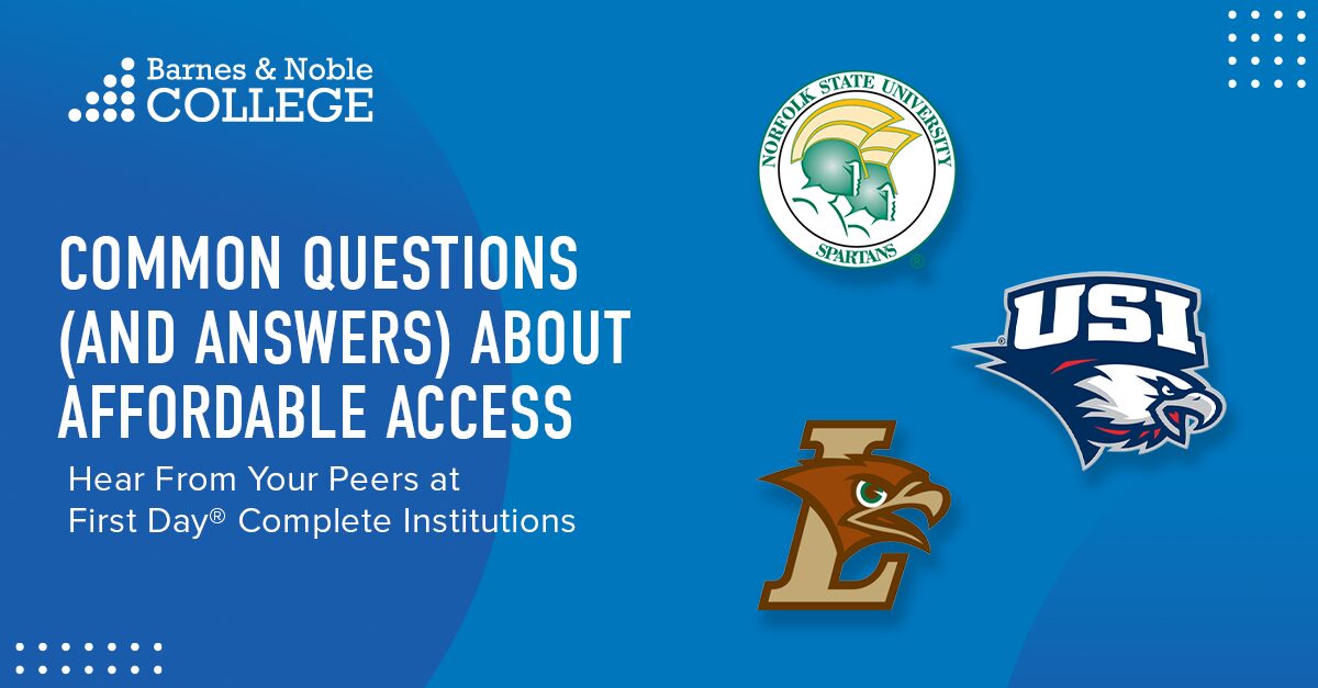 Institutions of all types and sizes are partnering with Barnes & Noble College to implement affordable access programs. While programs like BNC’s First Day® Complete help improve access, convenience and save students between 35-50% on the cost of course materials, there are lingering questions and myths about how it works, and whether it benefits all students.