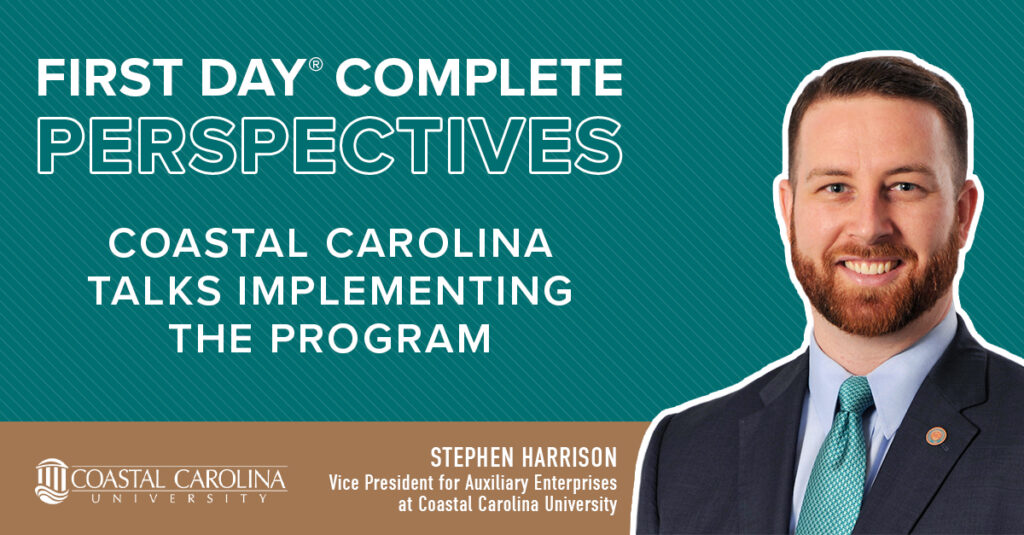 Coastal Carolina University (CCU) launched First Day Complete in Fall 2022. At a recent industry event, Stephen Harrison, Vice President for Auxiliary Enterprises at CCU, shared his perspective on BNC’s program and the initial response on campus. He also offered lessons learned and tips on communicating about the program with key audiences.